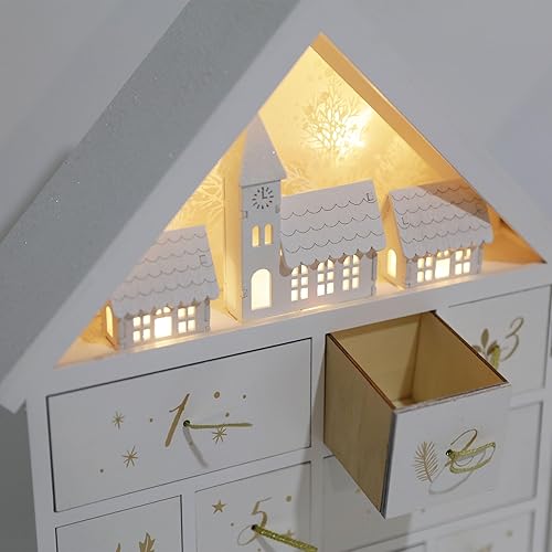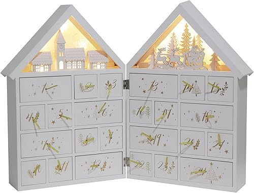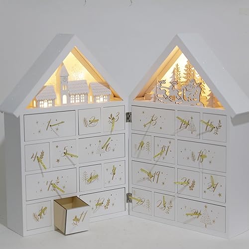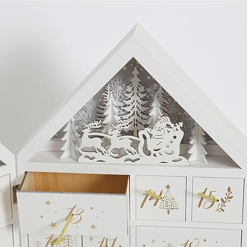 PE Noël Calendrier de l'Avent en Bois Grand à remplir avec 24 tiroirs - Calendrier de Noël avec scène de forêt d'hiver et Père Noël - Fait Main Décoration de Noël pour enfants et adultes