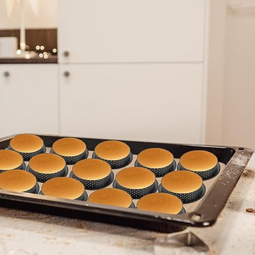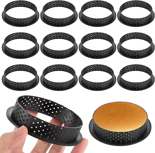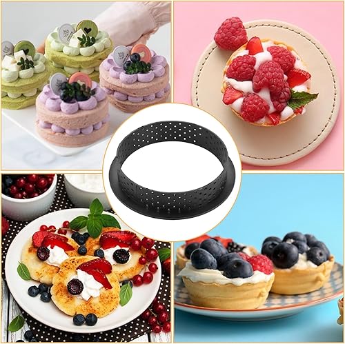 LOPYXBR Lot de 15 Moule a Tartelette 8cm, Cercle Tartelette en Plastique, Forme Ronde avec Trous d'Aération Moule Tartelette pour Cuisson de Pâtisseries, Gâteaux et Desserts, Réutilisable