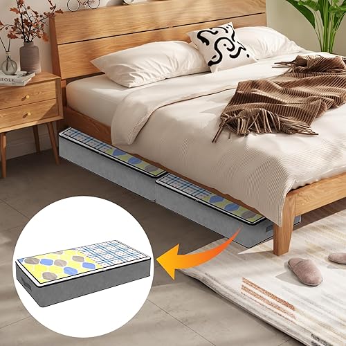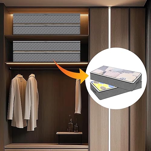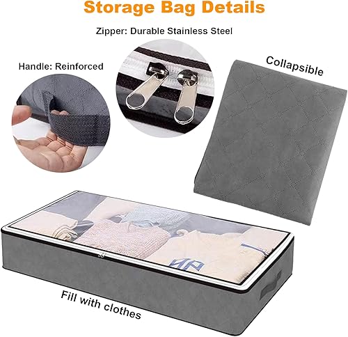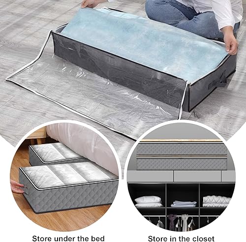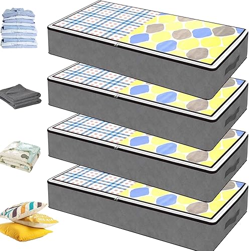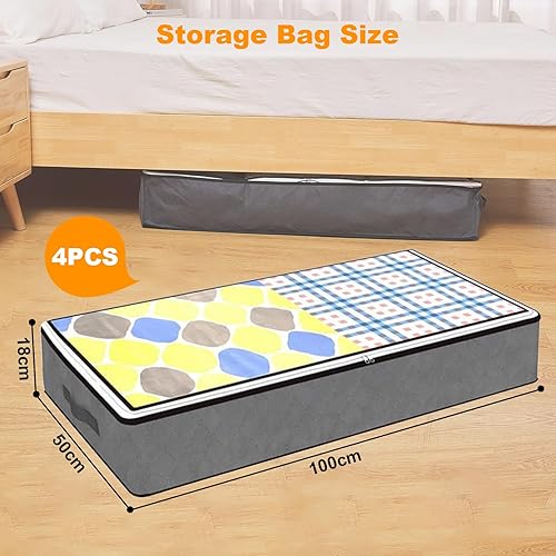 4 PCS Bacs de Rangement sous le Lit, sac de rangement sous lit, sac de rangement, pour Couvertures de Grande Capacité avec Poignée Renforcée, pour Couettes, Draps, Chambre à coucher, Placard(Gris)
