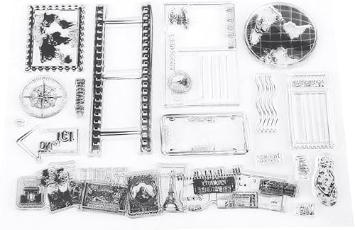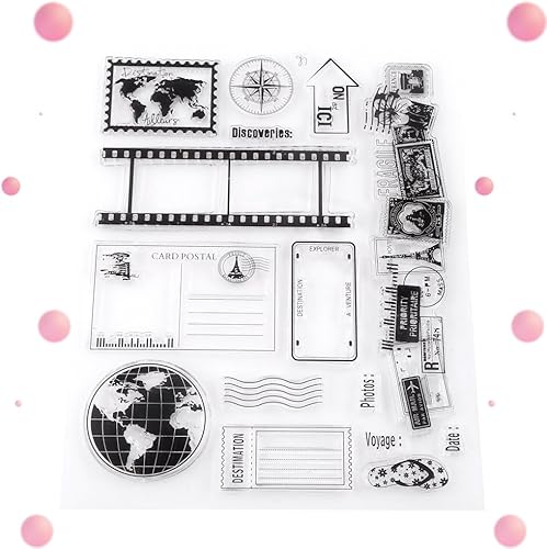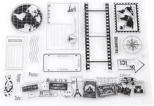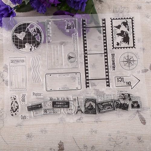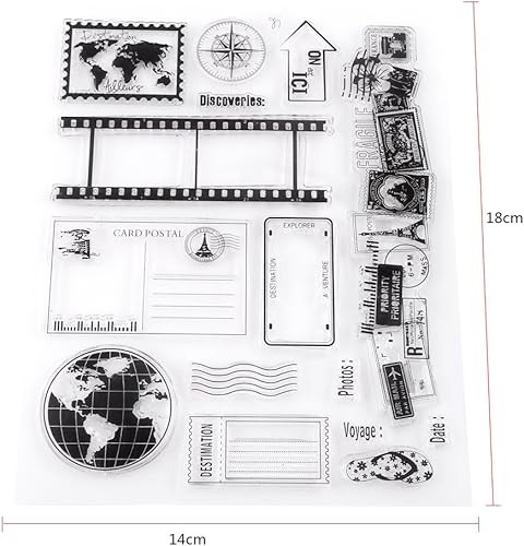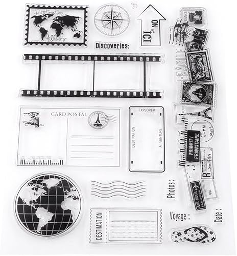 Ejoyous Tampon en Silicone Rectangulaire Motif Terre, Timbre de Voyage avec Tampons Carte et Carte Postale pour Journal et DIY