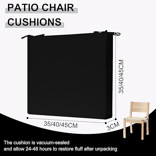 WLXFF Coussins Chaise avec Rubans, 3 cm d'épaisseur Coussins pour chaises Cuisine Coussins Siège Décoration Maison Coussin Mat Matelassée pour chaises Cuisine ou Salle à Manger,Noir,2PCS 35X35CM