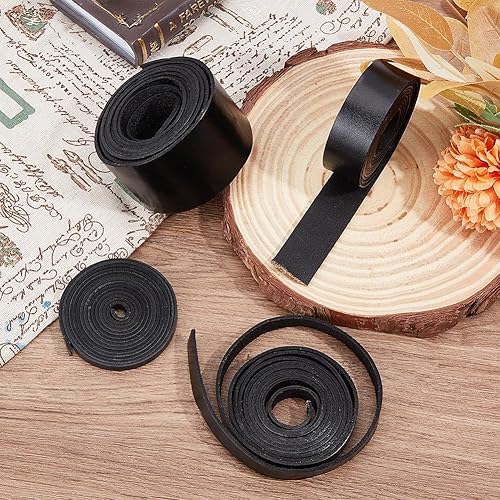 GORGECRAFT Bandes de Cuir Véritable 2mX25mmX2mm Cordon Plat en Cuir de Vache Corde de Tressage pour Bracelets Colliers Fabrication de Bijoux Colliers Ceintures de Guitare Porte-Clés, Tan