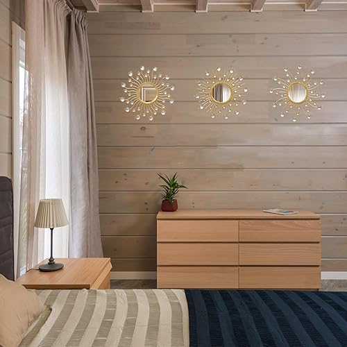 wotieuns Lot de 3 miroirs décoratifs muraux bohèmes dorés en métal à Suspendre pour Salon, Chambre à Coucher, Salle de Bain 23,5 x 23,5 cm