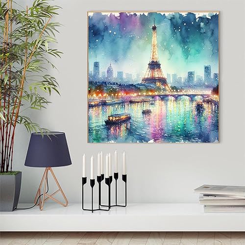 Huacan Kit Broderie Point de Croix Paysage Imprimé Tissu de Grille, Point de Croix Kit de Broderie 11CT DIY Œuvres D'art Faites à La Main pour Adultes Débutants 40 x 40 CM
