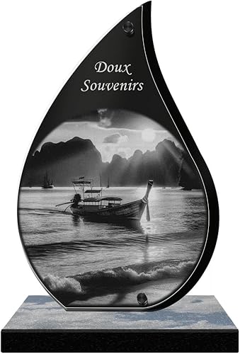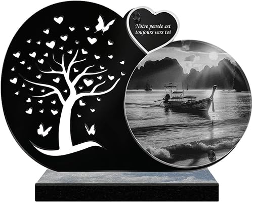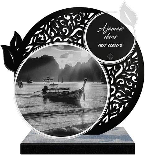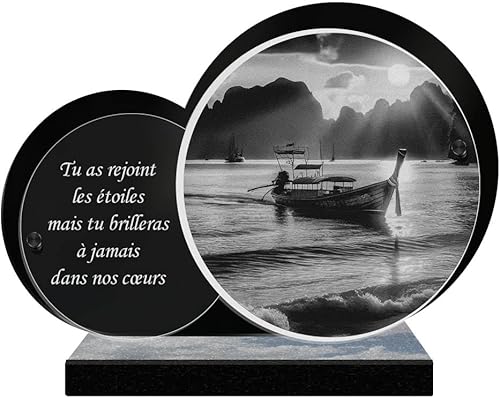 ETERNEL - Plaque Funéraire Personnalisée Rayons de Soleil - Bateau, Mer, Marin, Port - Texte Personnalisable, Plaque Funéraire Gravée au Laser pour Hommage, Plaque Cimetière, Tombale, Funérailles