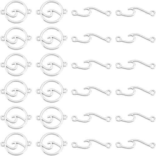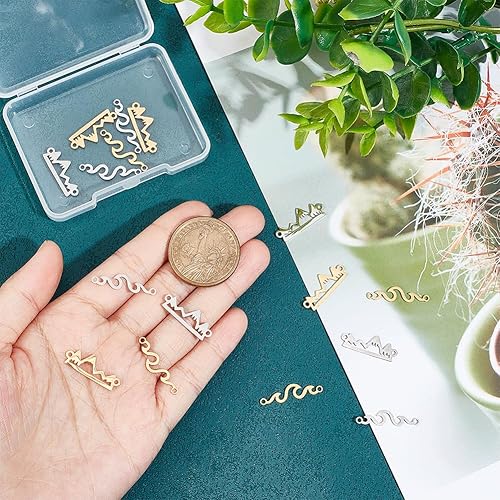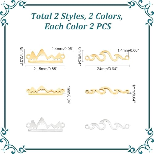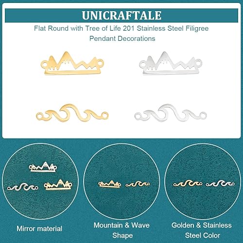 UNICRAFTALE 16 pièces 2 styles 2 couleurs 201 breloques de Connecteur Acier Inoxydable Maillons de Montagne Creux Breloque en Forme de Vague Breloques à Maillons Métal avec Double Boucle de Bijoux