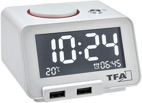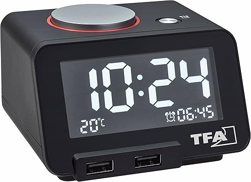 TFA Dostmann Réveil numérique Homtime, 60.2017.01, reveil Matin avec Fonction de Charge USB, Digital, Alarme mélodique, Volume réglable, Fonction Snooze, Noir