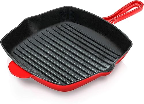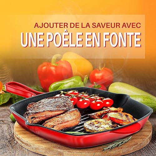 Nutrichef Poêle Grill- Poêle à Griller en Fonte Émaillée de 28 cm -Sauteuse Carrée avec Évacuation-Compatible Tous feux dont Induction Marques de Gril