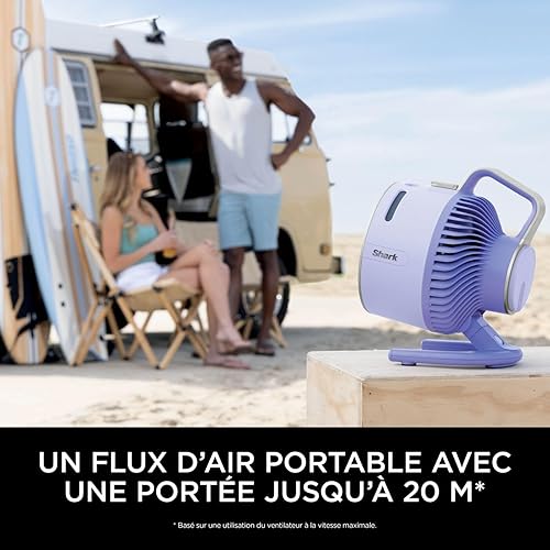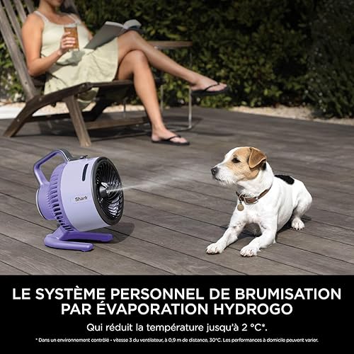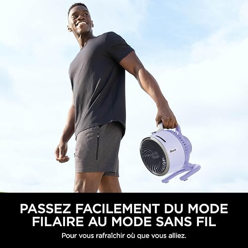 Shark FlexBreeze HydroGo, ventilateur brumisateur portable, rafraîchisseur d'air silencieux intérieur/extérieur, discret et durable, avec/sans fil, léger, flux d’air jusqu’à 20 m, Lila FA050EULV