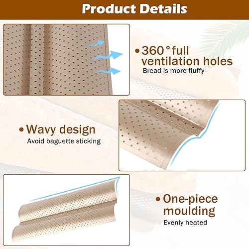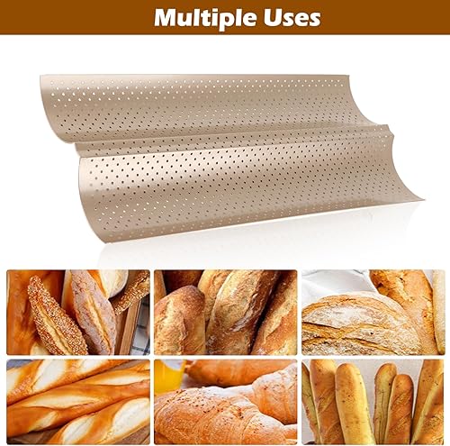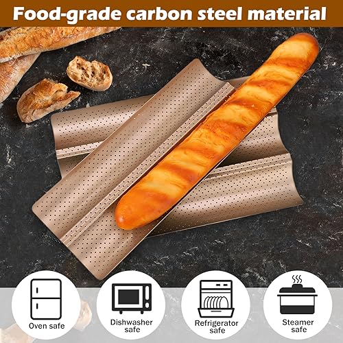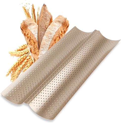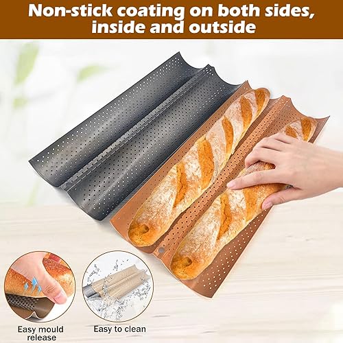 Moule Baguette, 2 Fentes En Acier Au Carbone Antiadhésif De Qualité Alimentaire Design Perforé Moule À Baguette Française Pour Baguette Maison, Moules À Pain Français Pour Moules À Pâtisserie