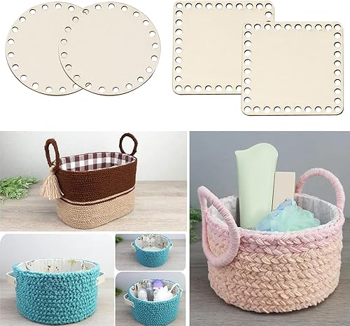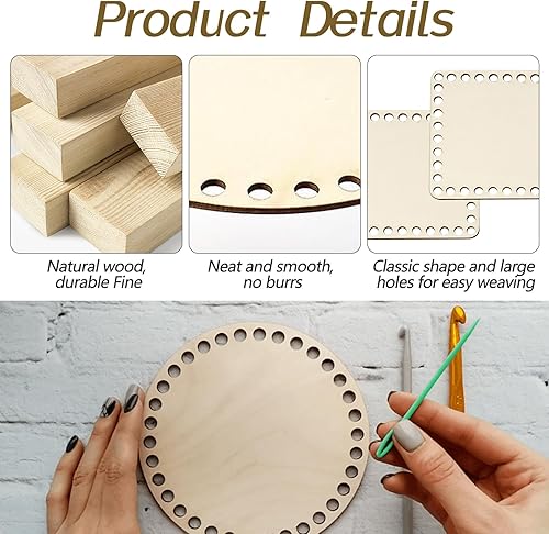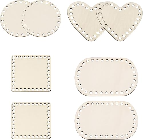 XMDROU Lot de 8 fonds de panier au crochet - 4 formes - En bois naturel - Pour crochet - Avec trous - 10 cm/15 cm
