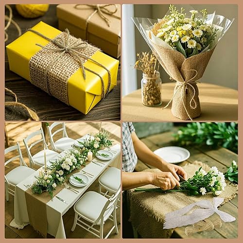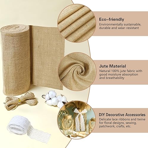 Chemin de Table Aspect Lin Naturel 30cm x 10m, Rouleau Toile de Jute, Chemin de Table Toile de Jute, Jute Rouleau, Chemin de Table en Jute Découpable Toile de Jute, pour Mariages, Fêtes, Festivals