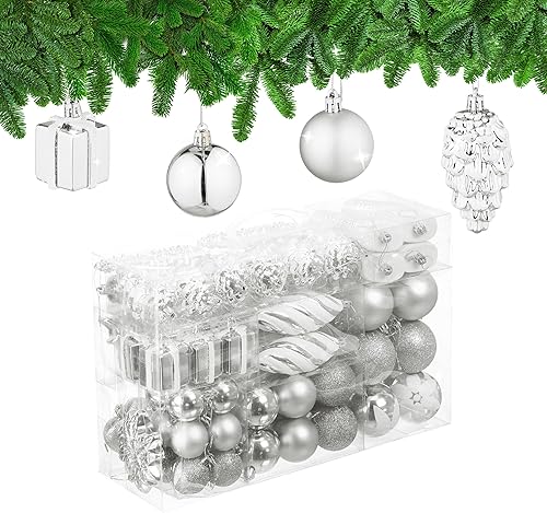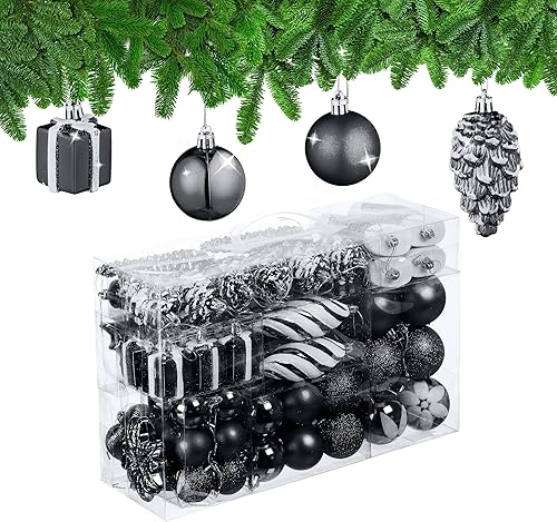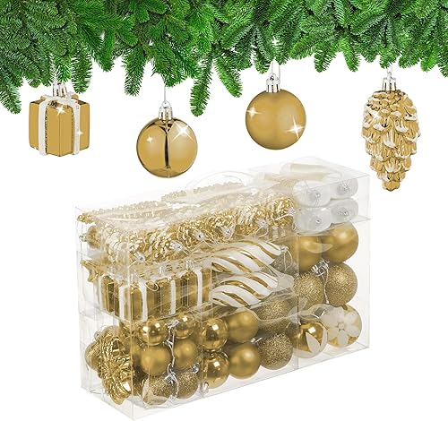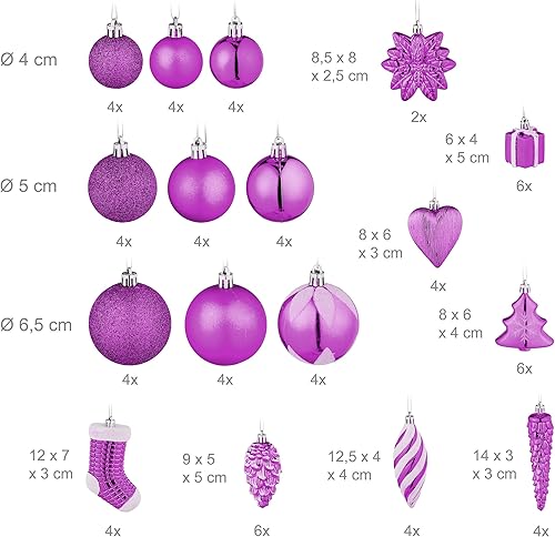 Relaxdays Boules de Noël, Lot de 72, en Plastique, Ornements de Sapin, cœurs, Bottes, Pommes de pin, Roses