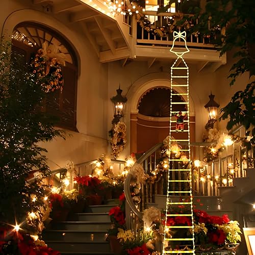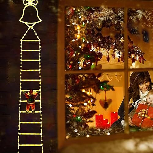 Échelle de Père Noël lumineuse de Noël à suspendre avec 8 modes d'éclairage et télécommande pour intérieur ou extérieur, jardin, sapin de Noël, décoration de fenêtre - 3 m