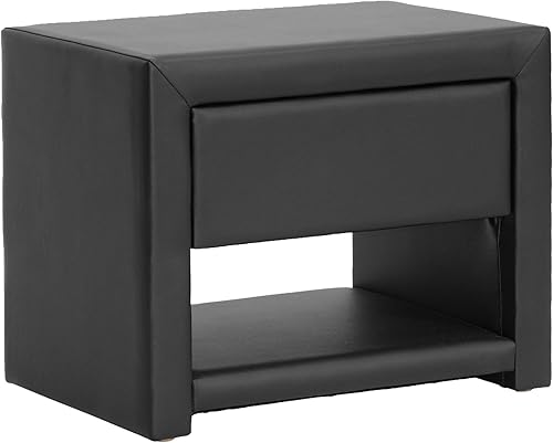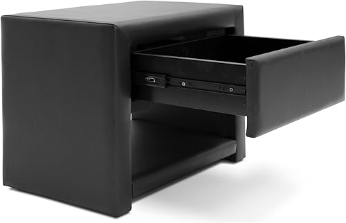 Baxton Studio Massey Table de chevet, Similicuir, Noir, Taille Unique