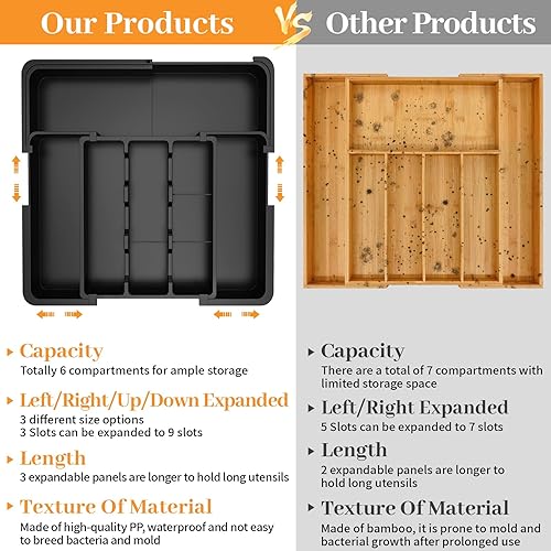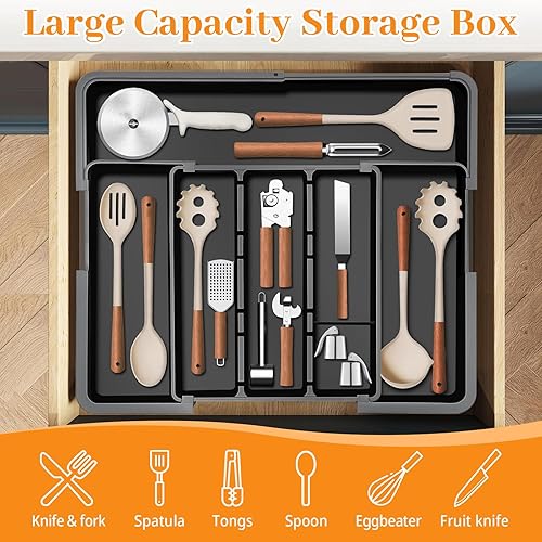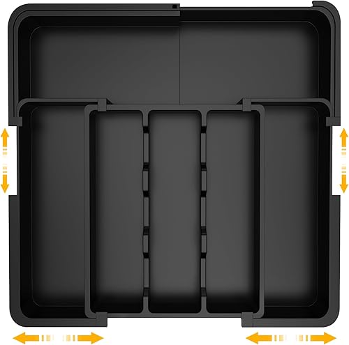 GLOSKIN Range Couverts pour Tiroir,Organisateur Tiroir Cuisine de Fourche Avec 6 Compartiments Extra-Larges,37 * 33 cm Range Couverts, pour Le Stockage de Vaisselle de Cuisine, Stockage de Tiroir,Noir
