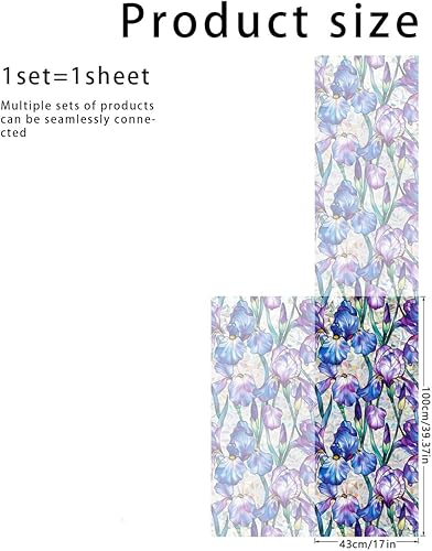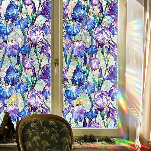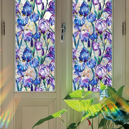 Runtoo Film d'intimité pour fenêtre - Autocollant statique 3D en vinyle pour vitrail - Motif fleurs d'iris - Non adhésif - 40 x 101,6 cm