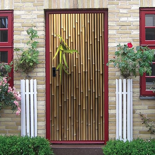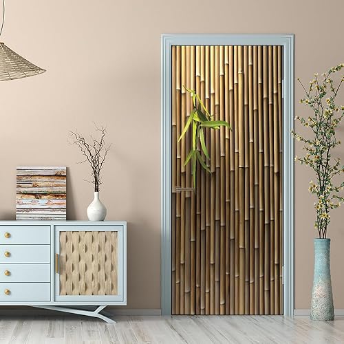 Stickers Porte Feuilles De Bambou Brun Autocollants de Décoration pour Porte PVC Stickers Porte Placard Amovible Poster pour Porte Imperméable Poster Porte Auto Adhésif Autocollant Porte 95x215cm