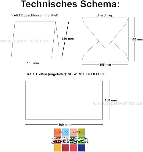 Lot de cartes pliées carrées | 15 x 15 cm – avec enveloppes | Pour cartes de vœux, invitations et autres occasions | Marque de qualité :FarbenFroh® de GUSTAV NEUSER® 50 Sets 10 - Hochweiß
