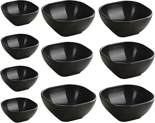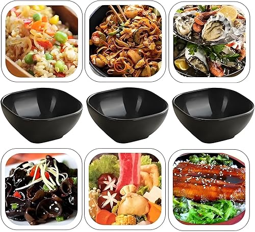 AGSYFFD Lot de 10 Bols à Sauce Carrés Empilables - Céramique de Luxe imitation Sécurisée pour Apéritifs, Sushis et Planches Charcuterie - Compatible Lave-Vaisselle & Micro-Ondes (Noir)