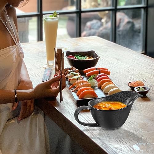 PACKOVE Saucière en Porcelaine Saucière en Céramique Récipient à Sauce Bol à Sauce Fournitures de Cuisine pour le Lait (Noir)