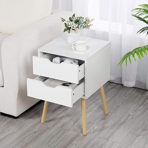 Yaheetech Table de Chevet Lot de 2 Blanche, Table de Nuit pour Adulte, Chevet du Lit en Bois, Style Scandinave, 2 Tiroirs, Pied en Bois Massif Blanc
