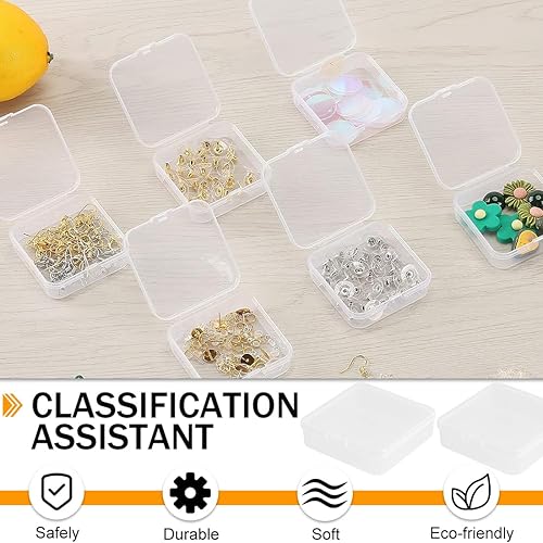 Lot de 8 de boîtes de rangement carrées en plastique transparent,Petite Boite Rangement Plastique,avec couvercles,pour les perles, les bouchons d'oreille et d'autres petits objets (7.2 * 7.2 * 1.8cm)