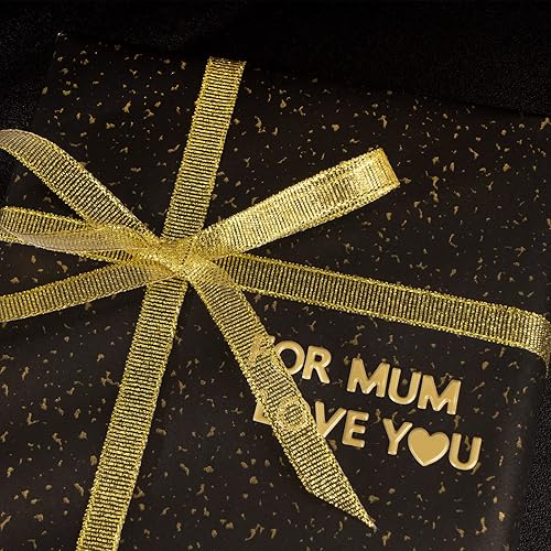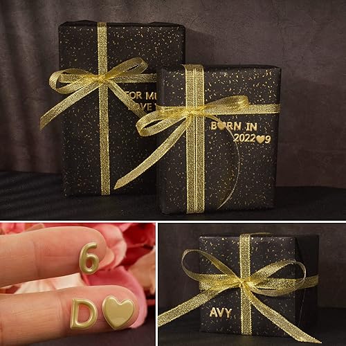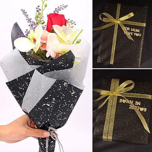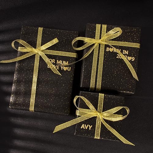 3PCS Papier d'Emballage Noir 54 x 76cm + Autocollant du Lettre + Ruban de Soie Or pour Cadeau Emballage Mariage Naissance Anniversaire Fête Halloween Carnaval