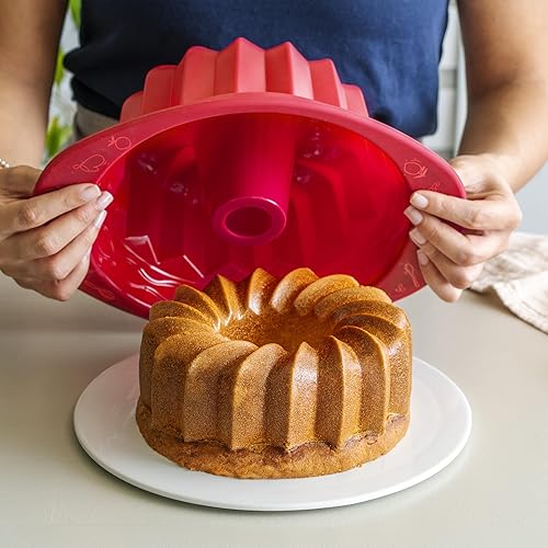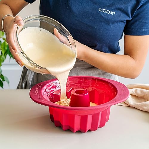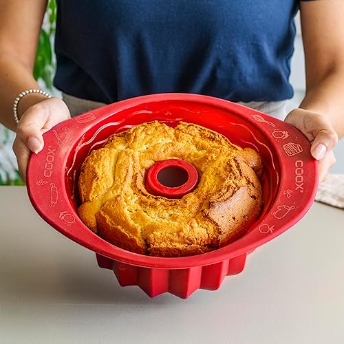 Coox Moule à Bundt avec poignées 24 x 10 cm, moule à pâtisserie antiadhésif en silicone de qualité supérieure pour gâteaux Bundt. Maintenant encore plus facile à cuire.