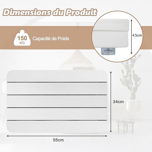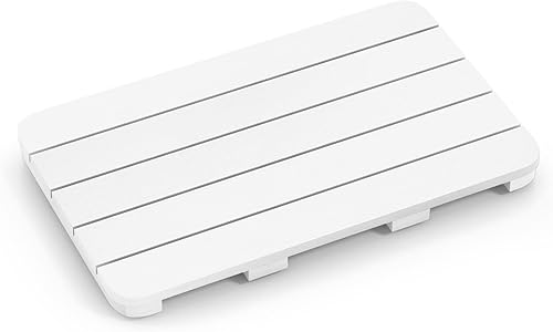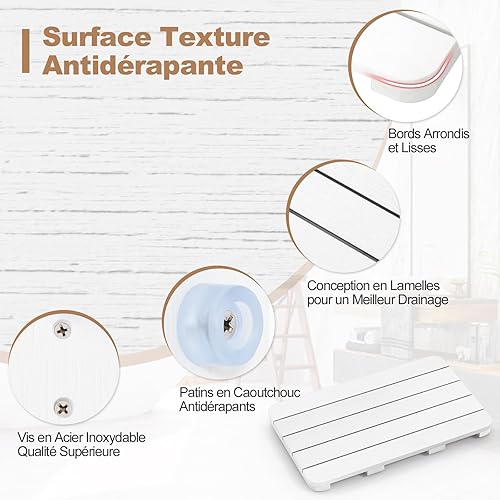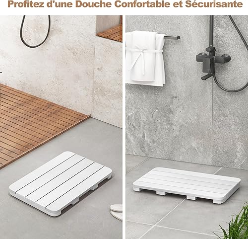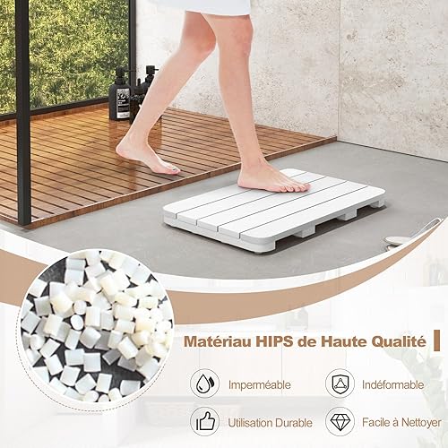COSTWAY Caillebotis de Douche, Tapis de Bain en HIPS Anti-moisissures et Antidérapant, pour Douche, Baignoire, Bord de Piscine, Patio, Intérieur ou Extérieur (34 x 55 cm, Blanc)