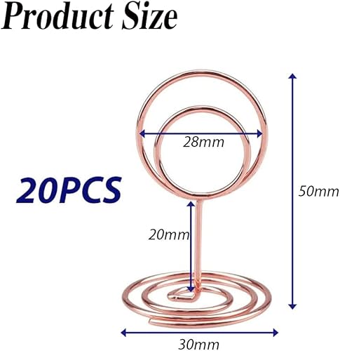 RHQFDM 20 Pièces Mini Porte Numéros de Table en Métal,Porte Cartes de Mariage en or Rose,Rond en Petit Porte Cartes de Table,Pour les Décorations de Fêtes de Mariage