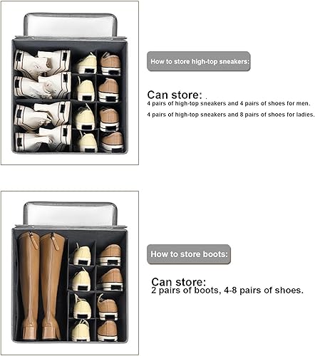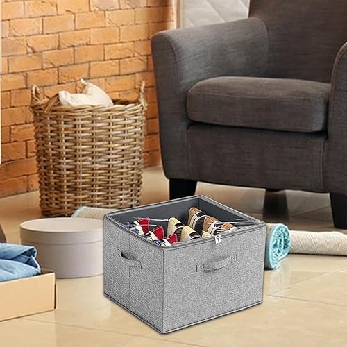 Hugsweet Conteneurs à chaussures, organisateur de chaussures Cubby - Organiseur de chaussures pliable pour 16 paires - Bacs de rangement en tissu peu encombrants avec couvercle transparent pour