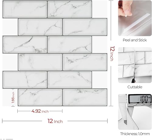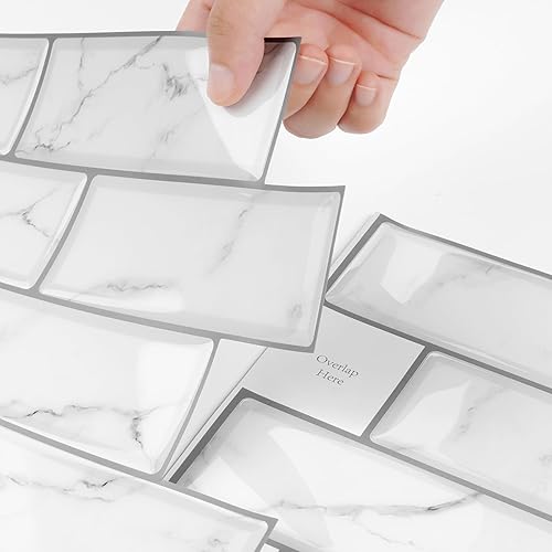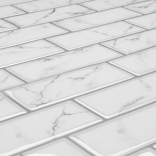 Livelynine Credence Adhesive pour Cuisine Marbre Blanc lavable Carrelage Adhesif Mural Salle de Bain 30x30CM Dalle PVC Adhesive Murale Effet Marbre Gris Clair Autocollant Carrelage Cuisine, 4 Dalles