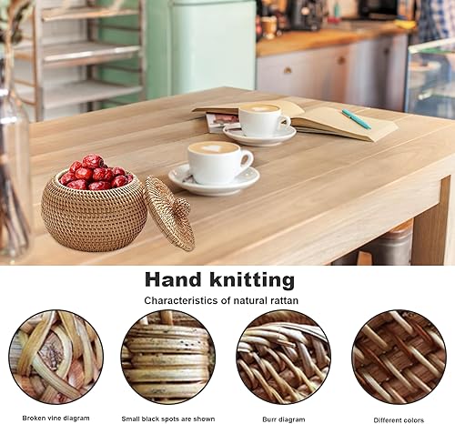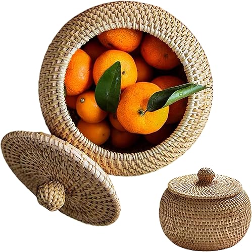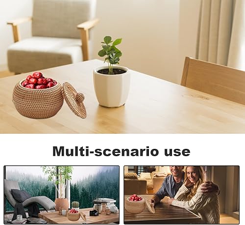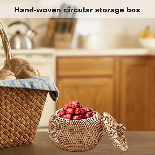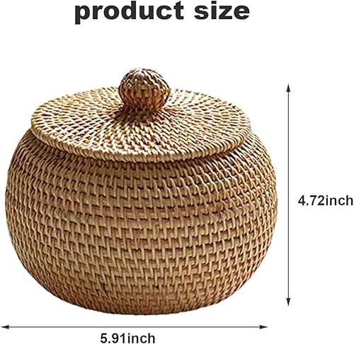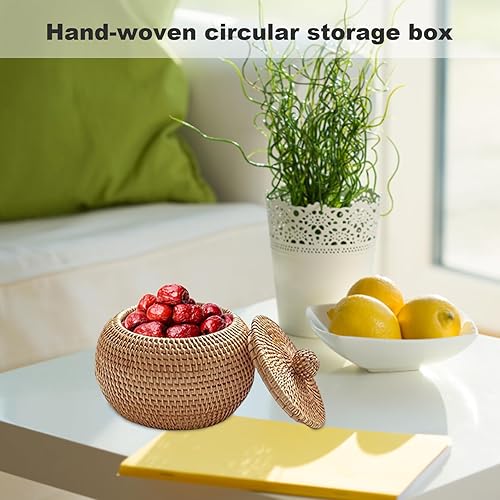 Obelunrp Petit Panier en Osier, boîte en rotin avec Couvercle Rond à poussière 5.91x5.91x4.72 Pouces tissée sans Odeur