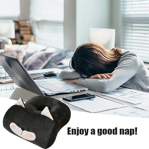 CutiitUU Oreiller de Sieste de Bureau en Coton à mémoire de Forme,Coussin de Piercing d'oreille avec Trou pour Le Bras,Oreiller de Sieste en Coton PP Respirant,Coussin de Sieste Doux (Noir)