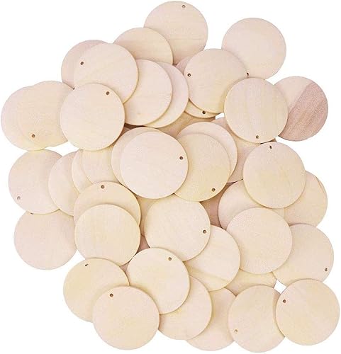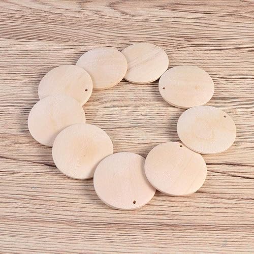 ysister 100 pièces Bois tranches de disques avec Trou pour DIY Art Artisanat Projet, Naturel Rond Puce De Bois Cercles Tags Tranches Disques, prêt à Peindre, étiqueter, décorer et colorier (4cm)
