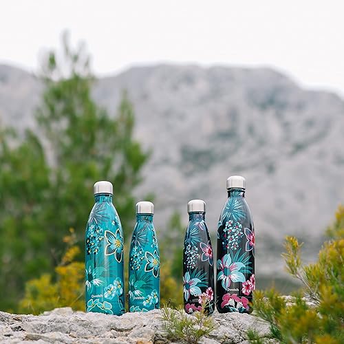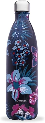 Qwetch - Bouteille Isotherme Bornéo Noir 1L - Gourde Nomade Inox - 24h Froid et 12h Chaud - Etanche, Sans BPA & Réutilisable - Gourde isotherme pour Sport, Voyage, Bureau, Randonnée