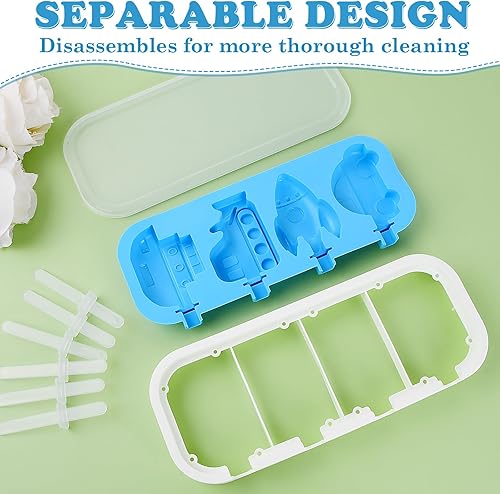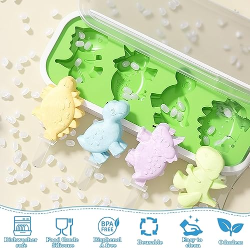 Volumoon 2 Pièces Moule à Glace, Moule Glace Silicone, Formes Véhicules Dinosaures, Moules Silicone Antiadhésifs, Moule à glace Réutilisables pour Gâteaux Sorbet Sucette Crèmes Glacées(Vert + Bleu)
