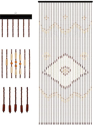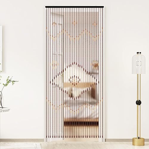 Poyujkyhr Rideau de porte en bambou à 31 brins - Rideau de perles pour porte de balcon - Rideau anti-insectes - Rideau décoratif avec perles en bois - Rideau séparateur de pièce - Pour portes