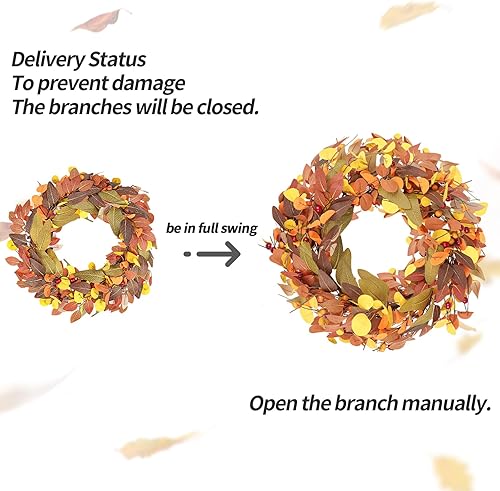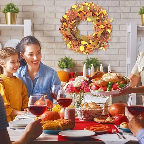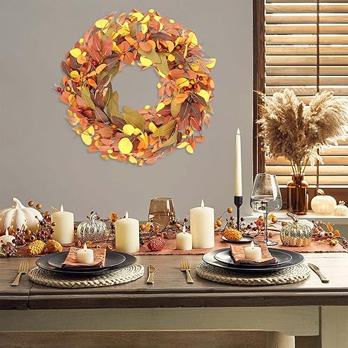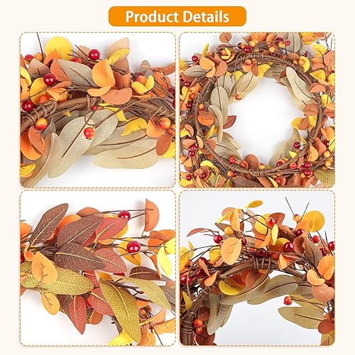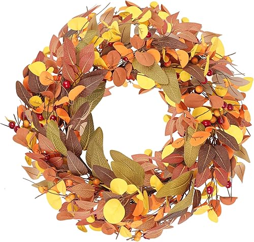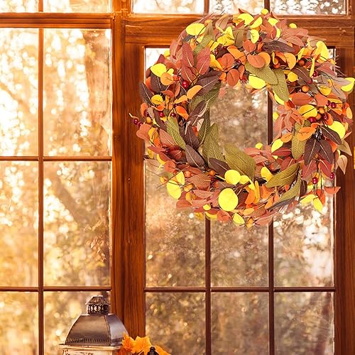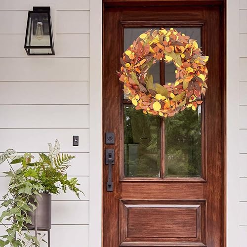 Wlicon 45cm Couronnes d'automne pour Porte d'Entrée, Couronne d'automne Artificielle avec Baies Magnolia Feuilles d'Eucalyptus pour l'Extérieur Intérieur Mur Fenêtre Décor d'automne