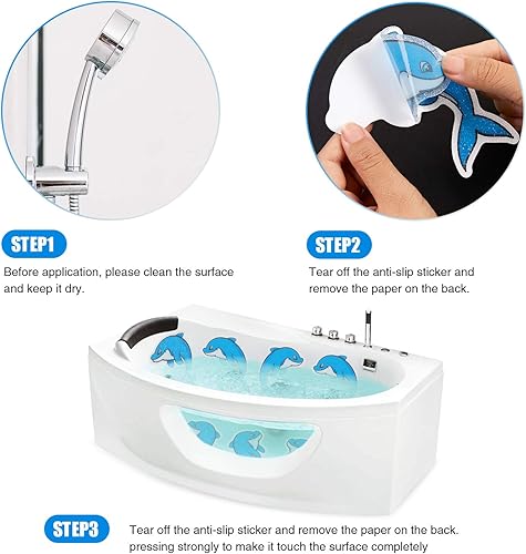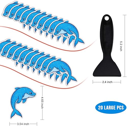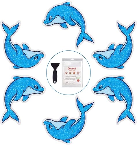Secopad Lot de 20 autocollants antidérapants pour baignoire et douche avec grattoir de qualité supérieure Motif dauphin