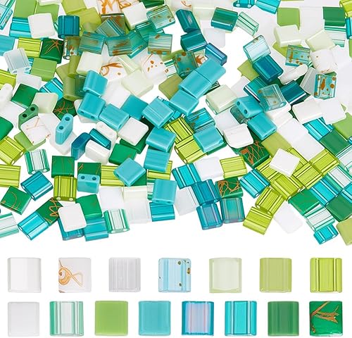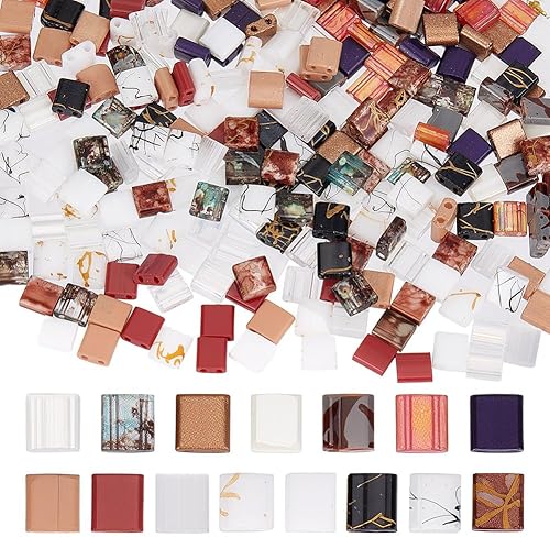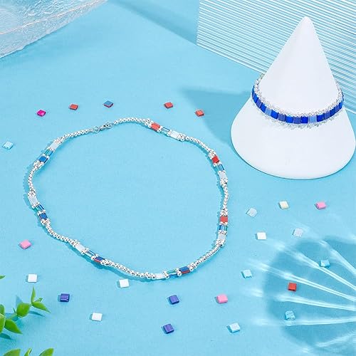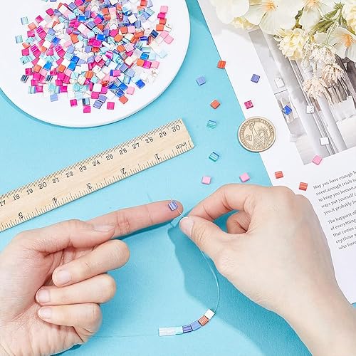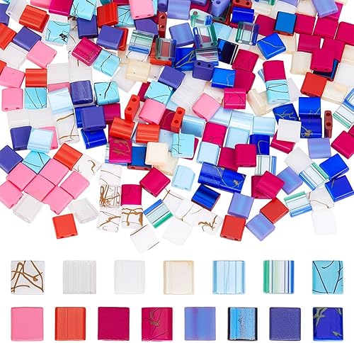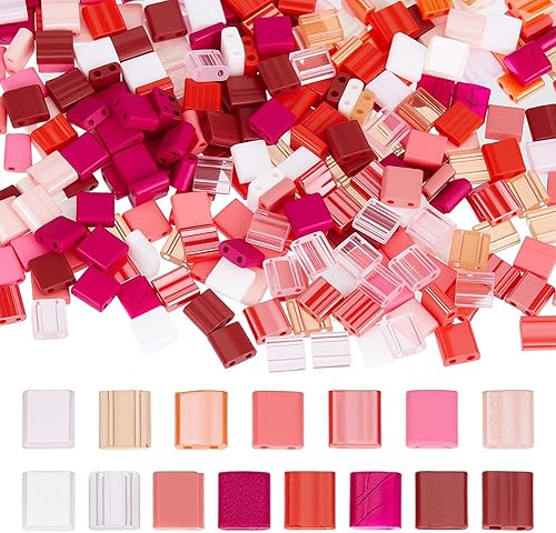HOBBIESAY 300 pièce Perles de Rocaille en Verre à 2 Trous 15 Couleurs Mini Perles Carrées Plates Perle Rocaille en Verre Opaque Perle D'Espacement Roses pour la Fabrication Bijoux Trou:0.5-0.8mm