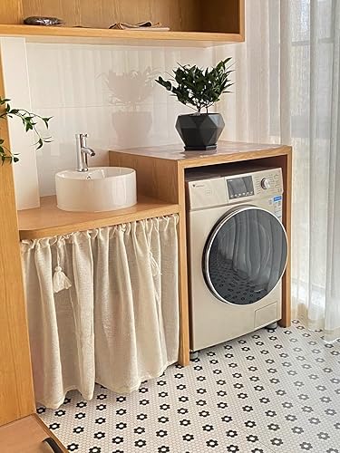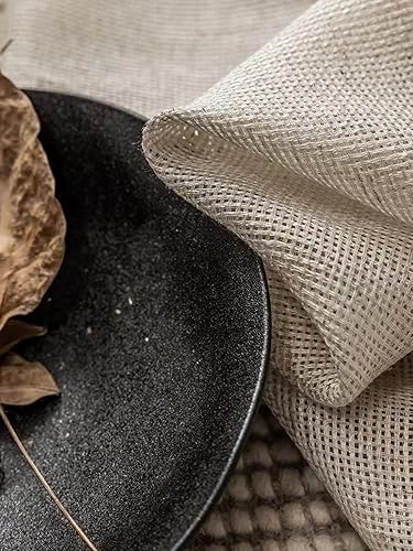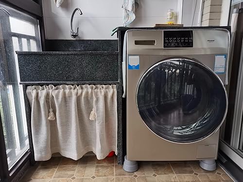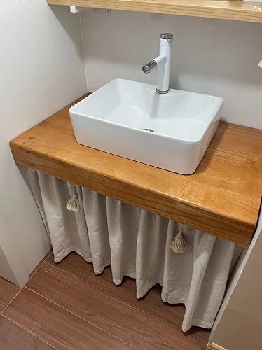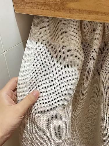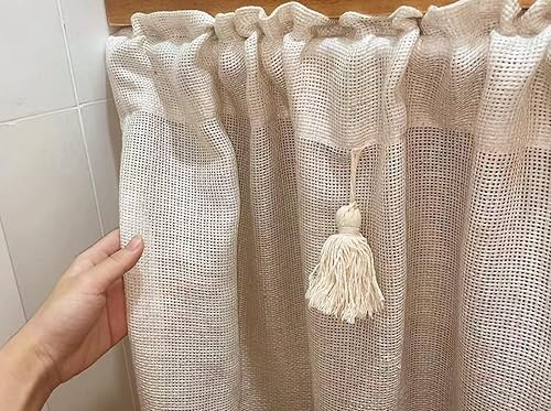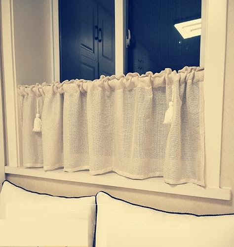 A.Monamour Rideau de Cuisine Court pour Petit Fenêtre Rétro Beige Uni Lin Coton Semi Transparent avec Glands Rideau Brise-bise Rideaux à Disques Cantonnières Demi Rideau Passe-Tringle pour Bistro Café