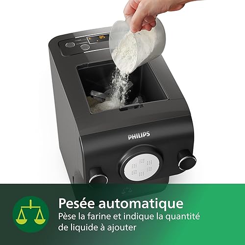 Philips Machine à Pâtes - Entièrement Automatique, Pesée Automatique, 8 Disques de Mise en Forme, Gris/Noir (HR2382/10)