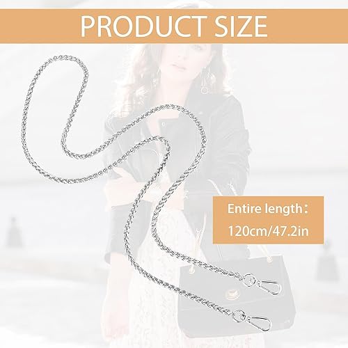 Molain Chaîne de sac à main - 120 cm - En métal - Bandoulière de rechange - Pour sac à main - Chaîne de sac à main - Chaîne de rechange - Argenté