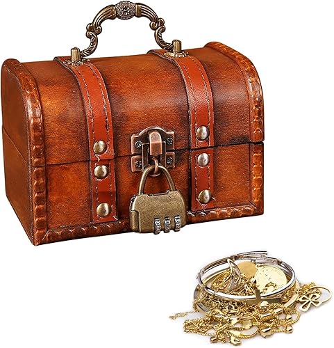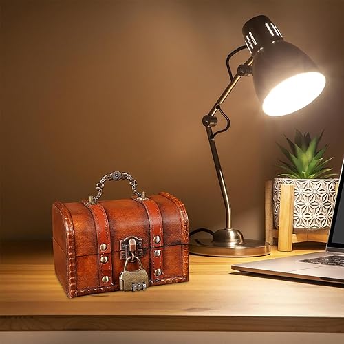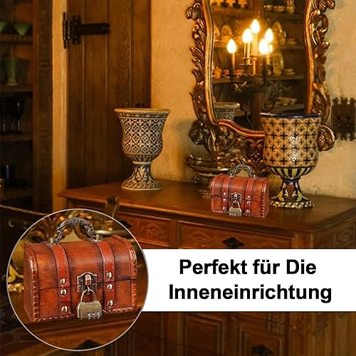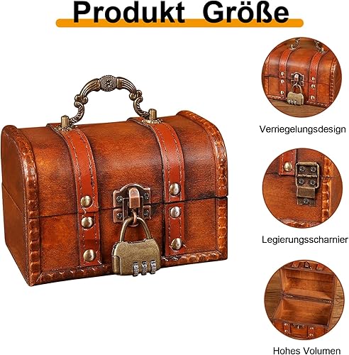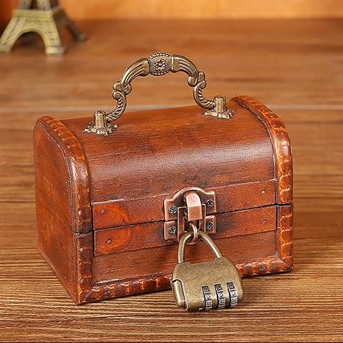 Boite avec Cadenas,Coffre au Trésor en Bois, Coffre au Trésor en Bois avec Serrure, Coffre au Trésor de Rangement en Bois, pour le Rangement et la Décoration, Rouge (11,8 x 8 x 8 cm)