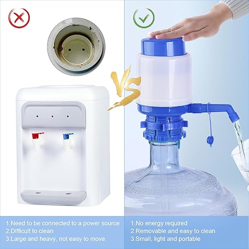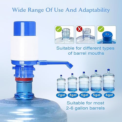 Qudubuy Pompe à eau manuelle portable compatible avec la plupart des refroidisseurs d'eau supérieurs de 52 à 55 mm, distributeur facile à presser à la main avec tube supplémentaire et bouchon