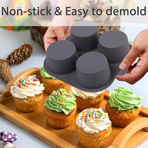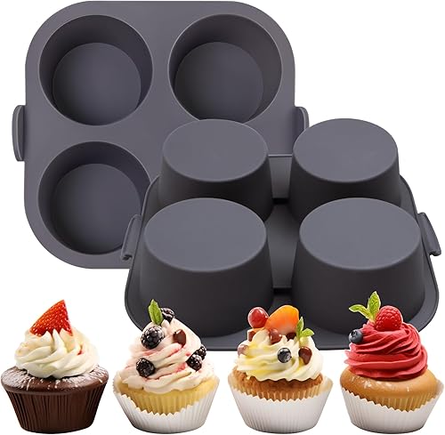 Butabeishy Lot de 2 moules à muffins en silicone pour friteuse à air chaud, anti-adhésif, en silicone, pour desserts, 4 cavités, gris