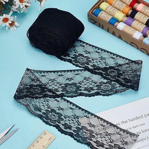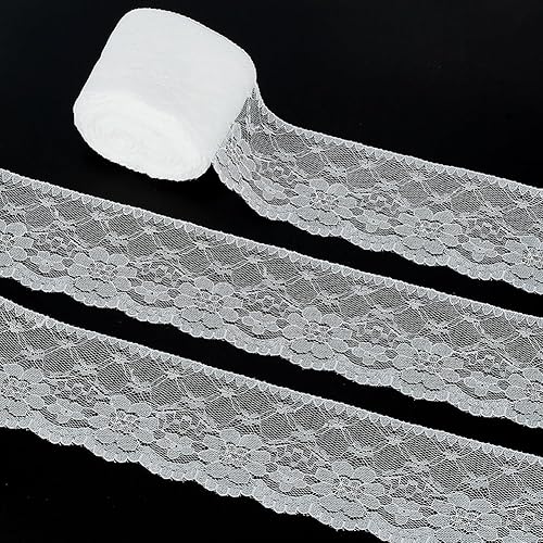HOBBIESAY 18.2m Dentelle Tissu Ruban 60mm Dentelle Motif Fleurs Blanc Ruban Dentelle Élastique Dentelle Garniture Vintage Rubans Garniture Polyester Pour la Couture Les Décorations Mariage