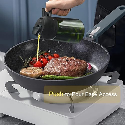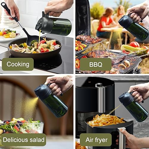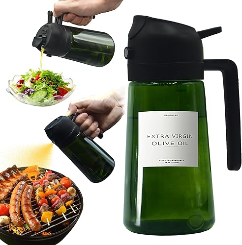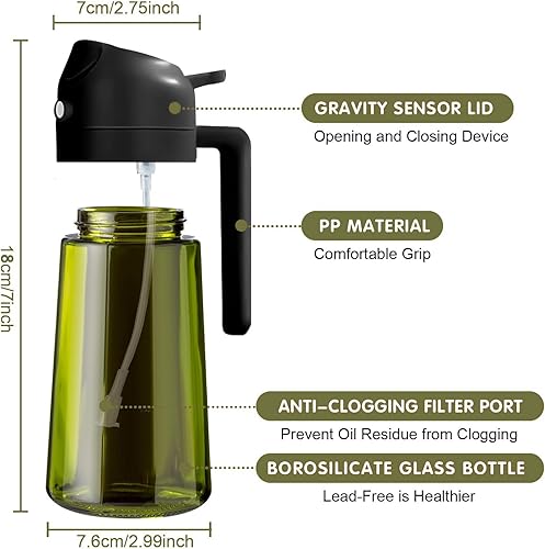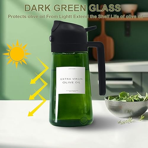 JIZHOUYAO Pulvérisateur d'huile foncée bloquant la lumière pour la cuisine, flacon distributeur d'huile d'olive 2 en 1 pour cuisine, noir